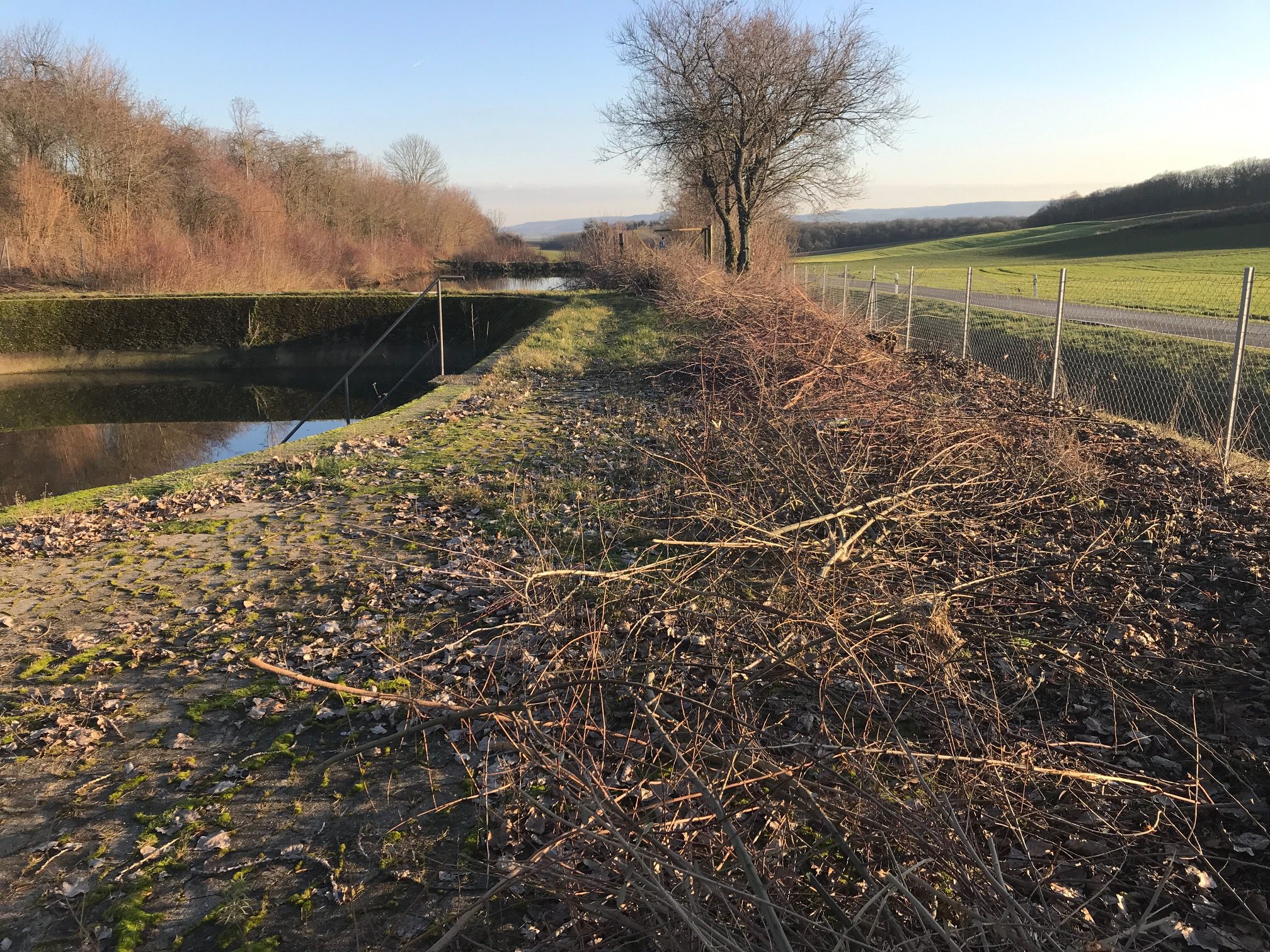 Rückschnitt von Sträuchern und Bäumen an der Kläranlage in Greßhausen